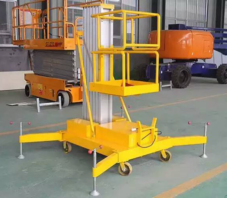 鋁合金液壓升降機(jī)且耗電少、無(wú)污染、工作時(shí)不傷地面,可用于貼墻工作及探出作業(yè),工作無(wú)死角。鋁合金液壓升降機(jī)廣泛適用于星級(jí)酒店,大型超市等各行業(yè)大廳、廠房?jī)?nèi)的高空清潔和電線、照明安裝維護(hù)類高空作業(yè),鋁合金液壓升降機(jī)根據(jù)其自身升高度可分為:?jiǎn)挝χ缴禉C(jī)(4-10米),雙桅柱式升降機(jī)(8-14米)跟多桅柱式升降機(jī)(12-22米)。